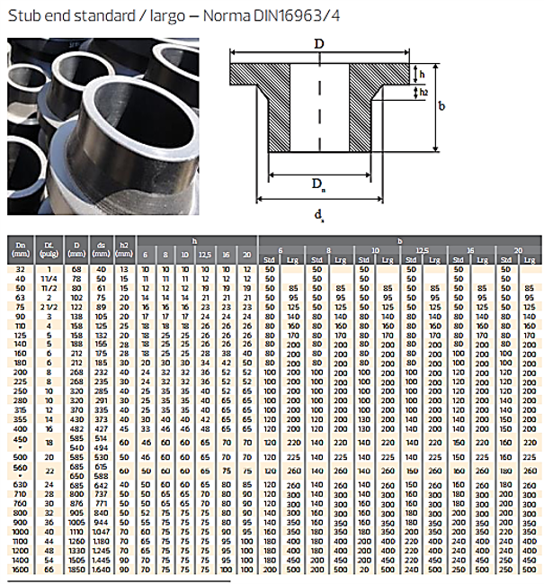 Stub End para tuberías de HDPE, También llamado porta flange, disponible para diámetros de 50 a 630mm en SDR11-PN16 y SDR17-PN10. Moldeado por inyección con material PE100 100% virgen. Cumple con la norma ISO44273.50 años de vida útil.